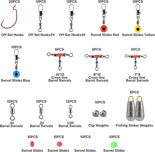 Fishing Tackle Set 180Pcs, Fishing Accessories Set with Tackle Box Including Barrel Swivels,Off Set Hooks,Swivel Slides,Cross-Line Barrel Swivels